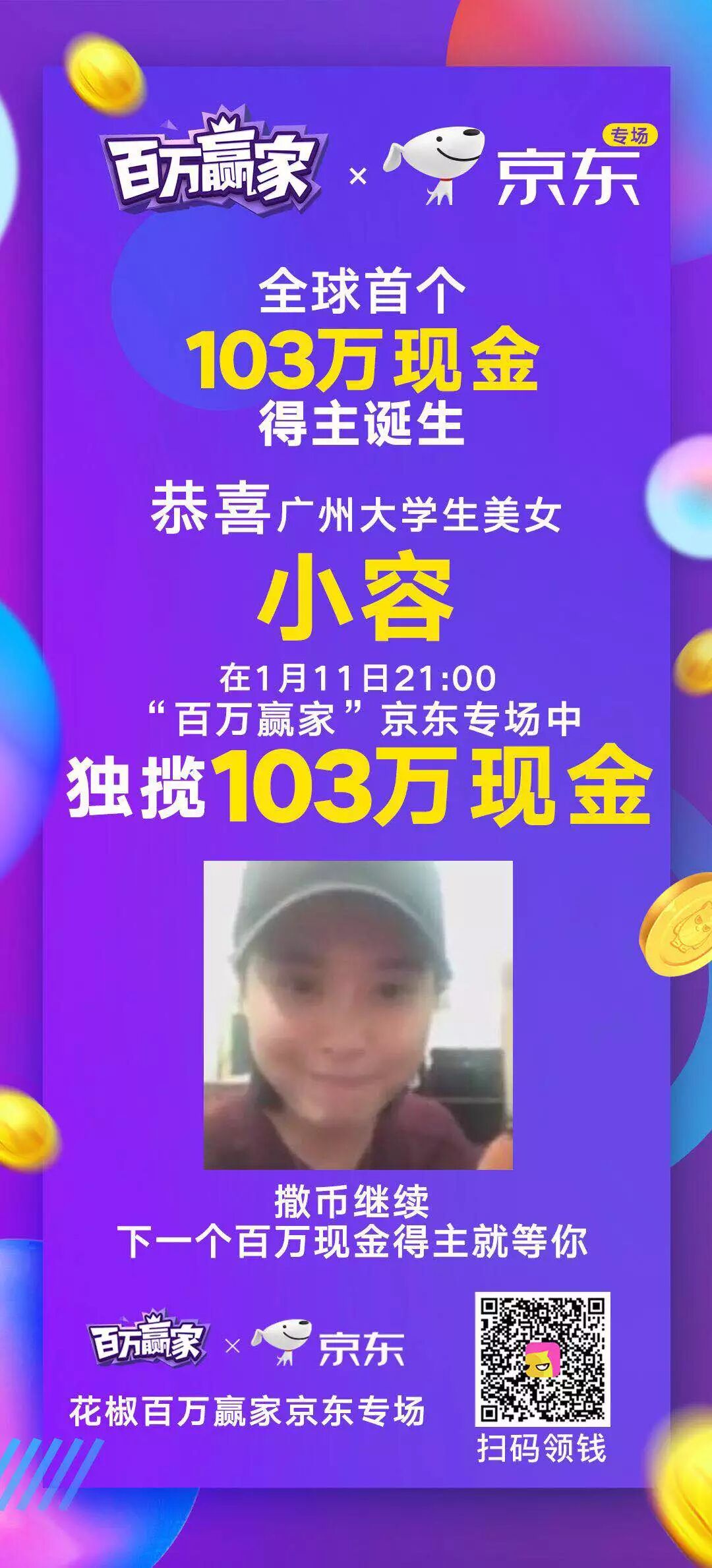 令人咋舌的是,1月11日,在花椒平台上,由京东作为赞助商冠名的《百万赢家》专场中,一位来自广州大学的大四女生力克近百万网友,独揽103万奖金,创造了直播答题史单人单场最高奖金纪录。昨天,《百万赢家》在京举办了“我是百万赢家“发布会,360创始人周鸿祎、京东CMO徐雷、花椒联合创始人于丹、103万获奖者小容出席了活动。据说,这位美女大学生一上台便遭到了周鸿祎和徐雷两位中年油腻大叔的“调侃”,小容不愿意摘掉围巾,老周就说“360是一家安全公司,我们来保证你的安全”,作为金主的徐雷也以金主爸爸之名力劝小容“就范”,结果,小容一摘掉围巾,一个鹅蛋脸、大眼睛的美女出现在大家眼前,神似明星赵丽颖。