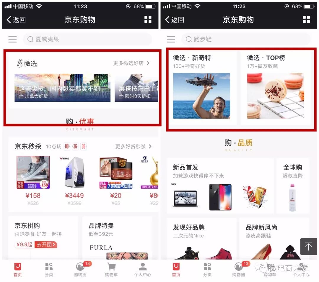 目前的页面展示主要就是在“发现”-“购物”旗下的以上两个版块。