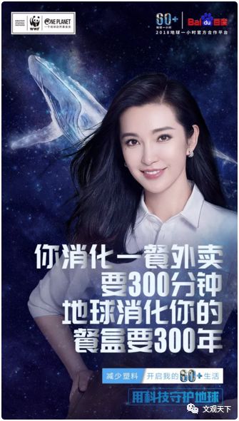 百度作为2018年地球一小时活动官方合作平台,今年与 WWF(世界自然基金会)在熄灯之余,共同倡导60+生活方式。60+生活,是指任何对自然环境友善,对节能减排有益,有助于推动环境保护和社会可持续发展的绿色生活行为方式。简单说,就是希望人们通过衣食住行的生活小事做起,为环境保护贡献一份力。