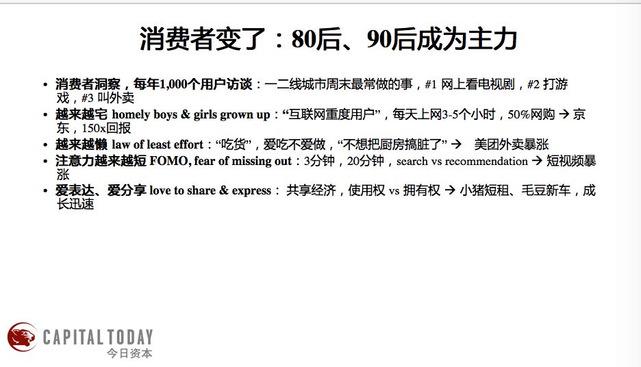 新消费升级时代,消费主力变成了以85后与95后为中心,用户行为在变懒(外卖)、思考变懒(今日头条)、注意力变短(抖音、快收)、信息焦虑(得到)、爱表达爱分享(朋友圈、微博)等。