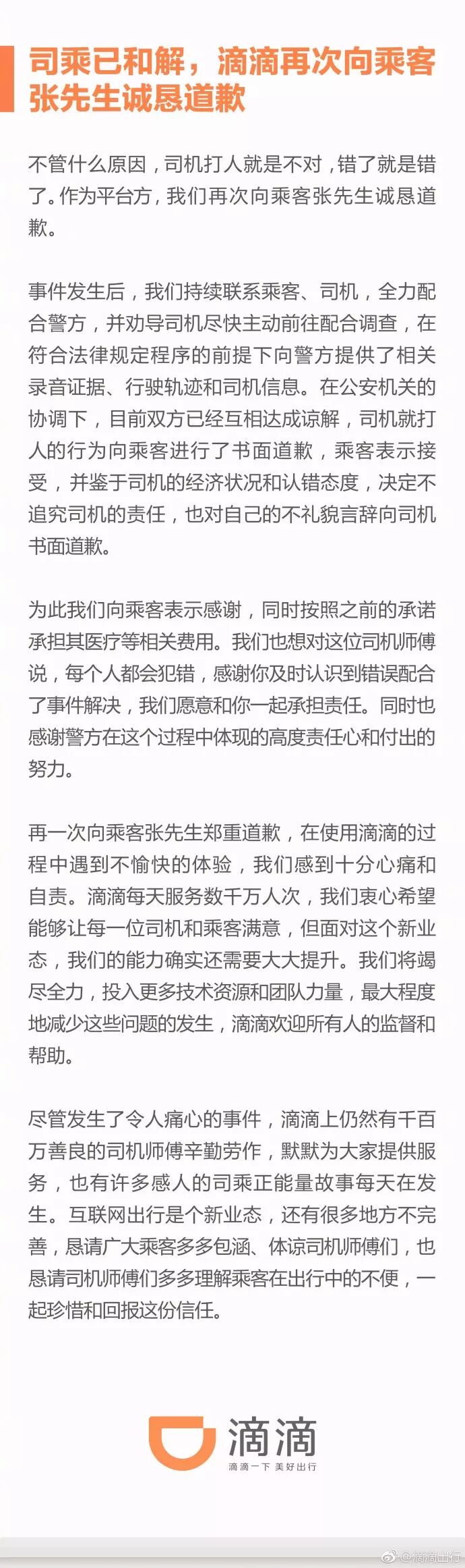 <em>b/滴滴再次向乘客张先生诚恳道歉。</em>