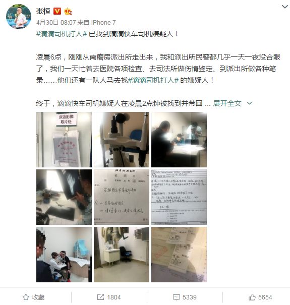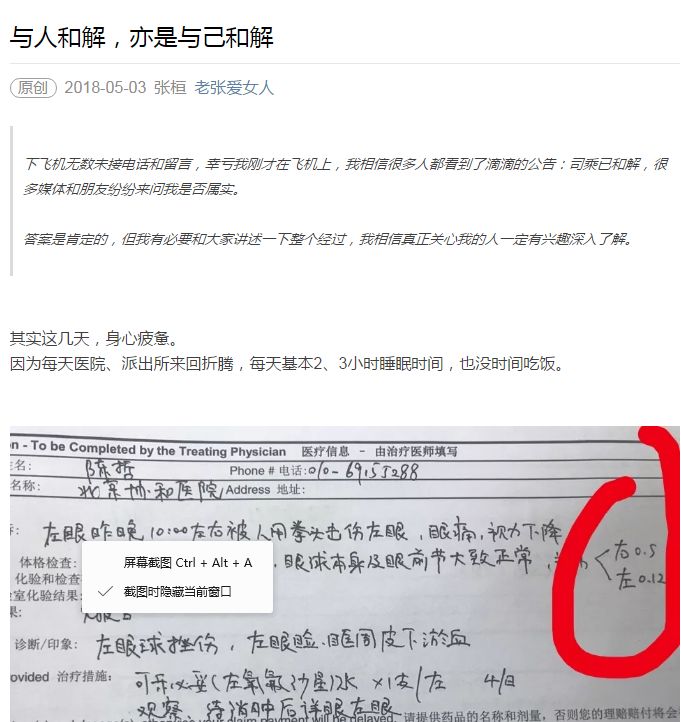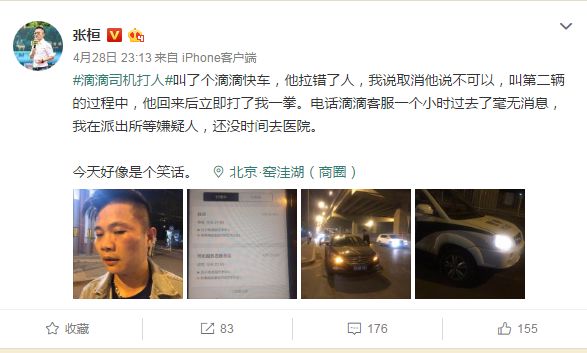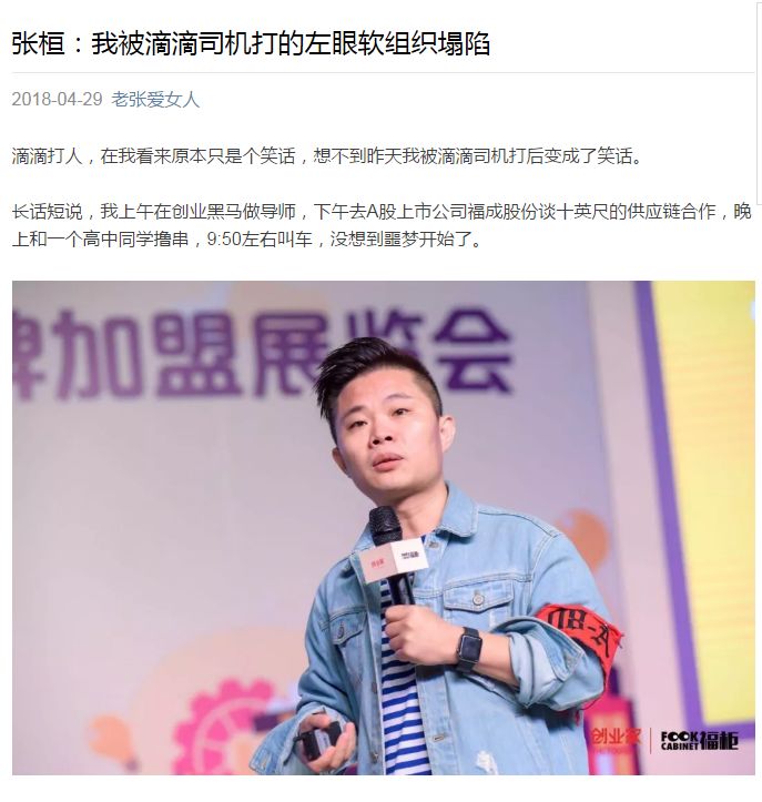 <em>2、4月29日,</em><em>一篇题为“张桓:我被滴滴司机打的左眼软组织塌陷”的微信文章发出,作者详细叙述了遭遇“滴滴打人”的经过,阅读量10万+,并强调了几点:</em>