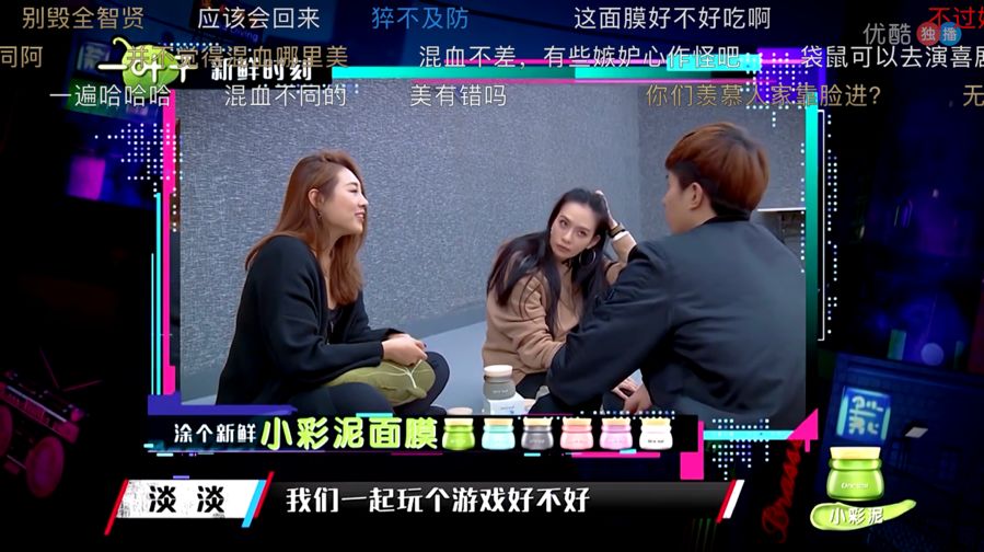 《这就是街舞》一开始的中插广告主要还是偏于传播模式,进行简单的剧情植入,比如三位选手剪刀石头布,赢的人给输的人一点“颜色”瞧瞧,于是就涂上了一叶子小彩泥面膜。