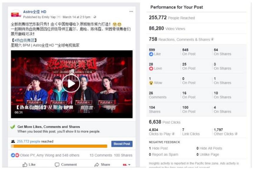而在此之前,《热血街舞团》已于3月17日登陆马来西亚Astro实现海外同步直播,在当地取得不俗的播放成绩。节目播出后,《热血街舞团》便一举拿下HD全佳台综艺节目Top3收视率,并登上马来西亚星洲日报、光明日报等多个媒体。两档街舞综艺的纷纷成功出海,无疑将会进一步扩大舞者的知名度,促进中国的街舞文化魅力推向海外市场。