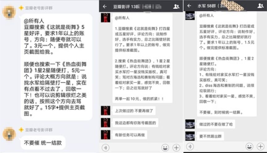 据说,“有人赫然叫卖起刷评论的业务,给《这就是街舞》打五星3块钱一个,给《热血街舞团》打一星或两星5元一个。 一星居然比五星还赚钱。”