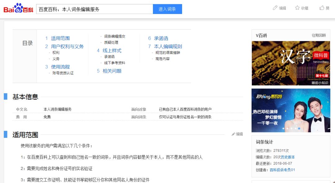 而在不久之前,百度百科又启动了一项新的功能:本人编辑服务。