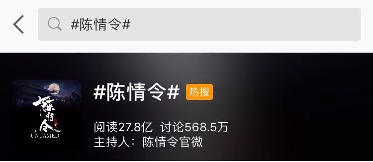 播出还未过半,《陈情令》已经上了22条热搜,热门微博数高达10351条。#陈情令#话题阅读量破27.8亿,相关讨论568.5万。