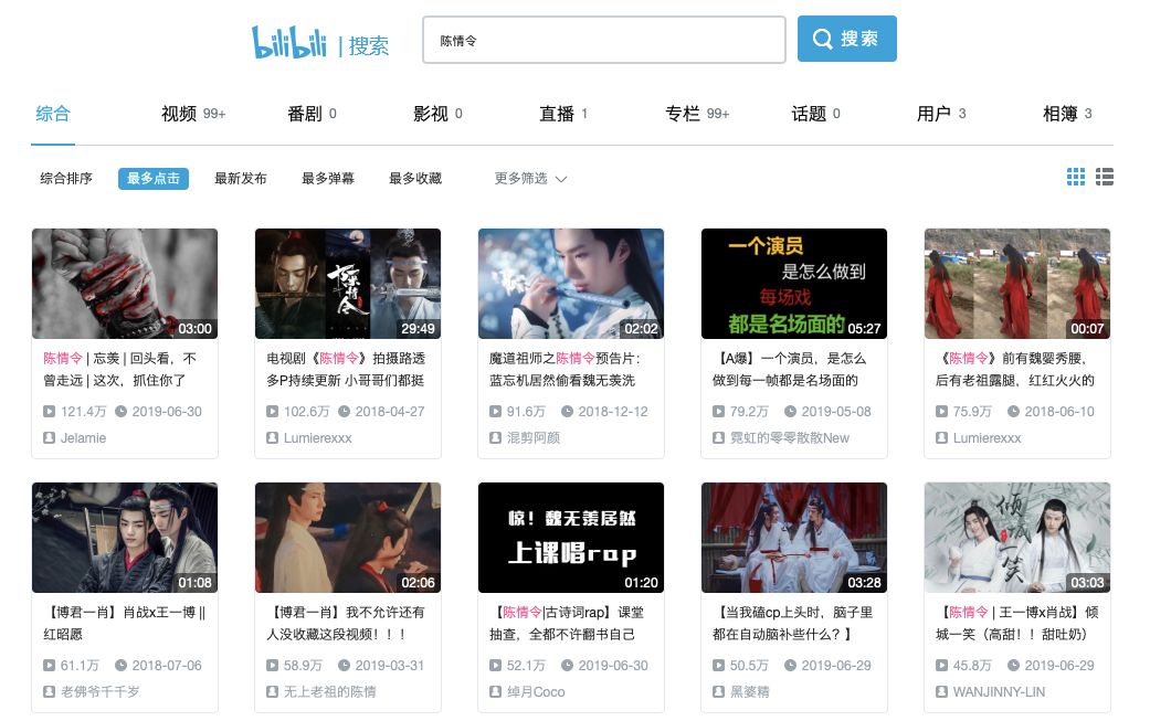 目前网上关于《陈情令》的讨论,已经超越了普通的观剧、弹幕互动的范畴,而是催生出许多二次产出传播内容的用户。B站上关于《陈情令》的一些花絮、物料、剪辑视频,播放量甚至突破了百万,足以证明剧集在粉丝内部已经成为爆款,并且有望破壁吸引到更多圈外人士。