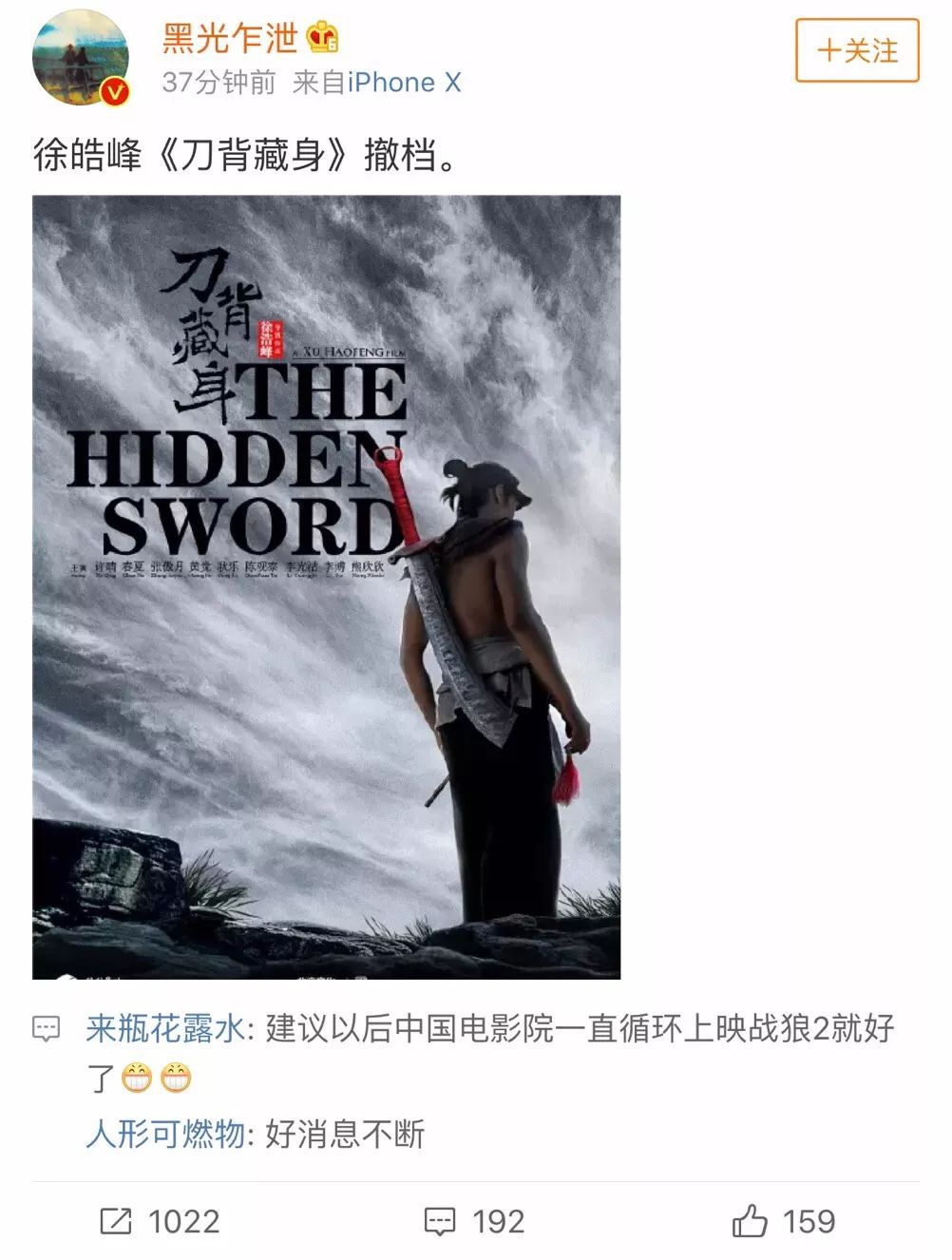 只可惜,《刀背藏身》被曝撤档。徐浩峰近期可能无法再证明他硬派武侠影像风格的价值了。