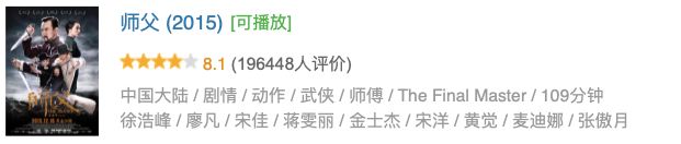 《师父》是徐浩峰第一部在内地公映的电影,也是2015 年口碑最好的电影之一,豆瓣电影评分8.1分。