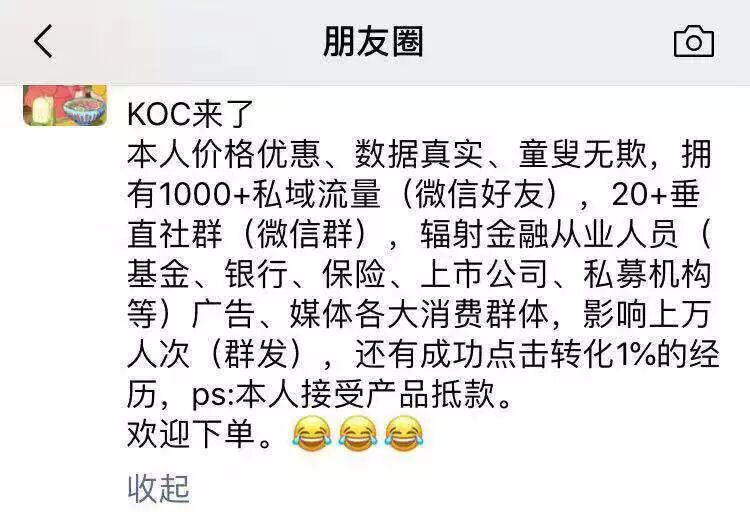 KOC的上升渠道还是KOL,给钱的叫爸爸,微商最后的转型还不是做了总代。没有任何性的恶意,现在的营销,现在的增长,越来越被一些所谓的“专家”给玩坏了,没有经过任何验证,只从别人看到的,就提出一个新的词汇,并且是很不负责任的,KOC这个词一出,估计就有线上课程来收费了,割韭菜的公式。