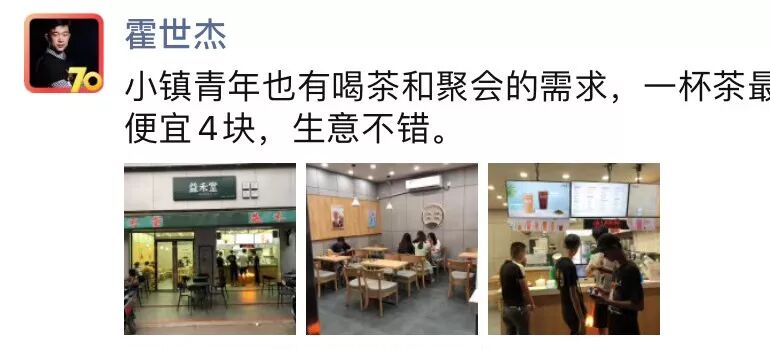 大叔在今年十一假期专门在下沉市场呆了五天,最大的感受有两个:1、智能手机在下沉市场的渗透率已经非常深了;2、线下市场潜力巨大,但很难一招通吃,本地化非常重要。大叔看到,一个人口规模在20万人的小镇上,最繁华的一条街上,竟然有超过10家茶饮相关的门店,但只有一家本地品牌的门店生意最好,相反,单一模仿喜茶或奈雪的茶的门店,生意并不好。
