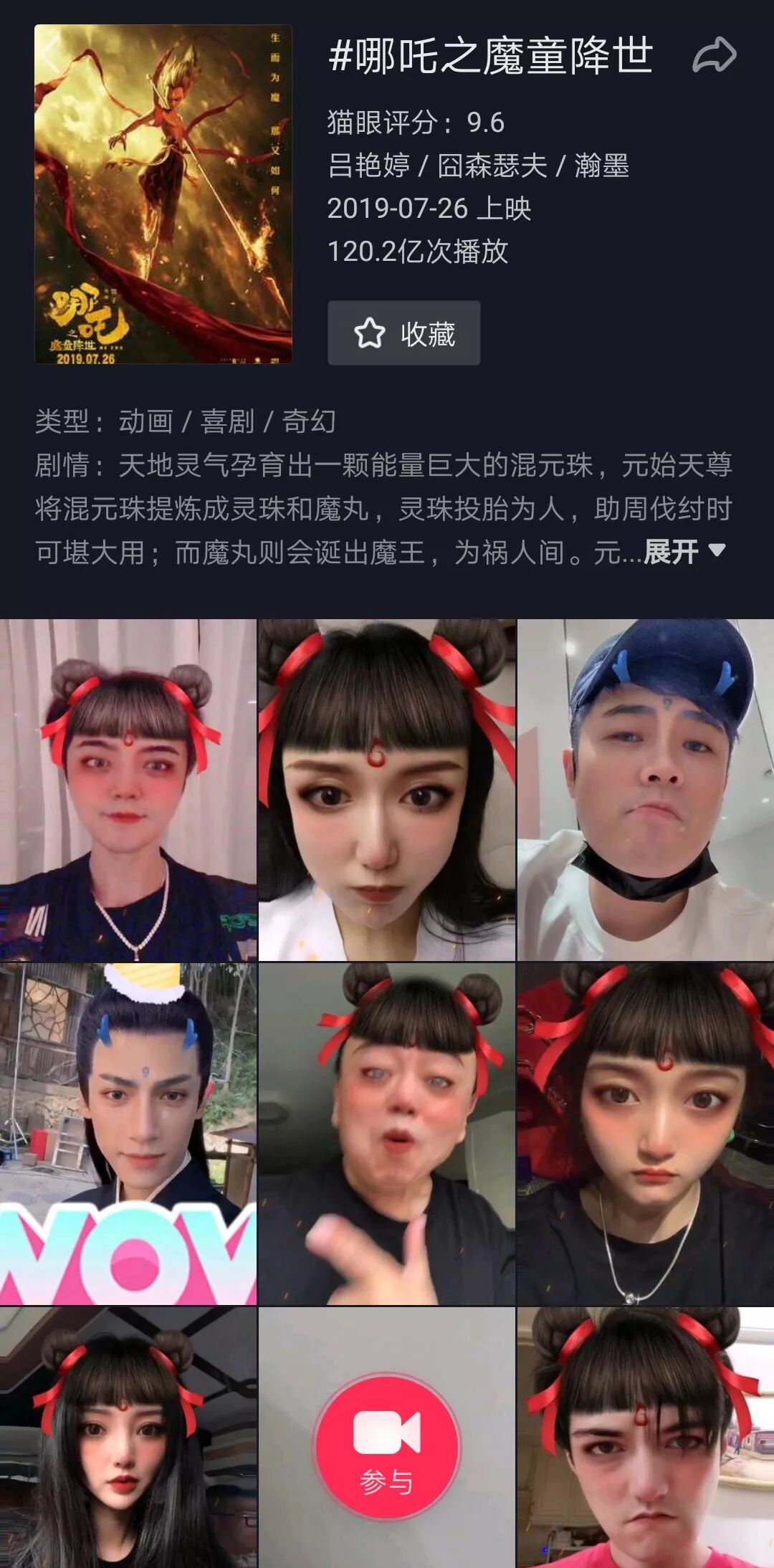 尤其是在近两年,位列票房榜前列的影片几乎都在短视频平台布局宣发。据统计,2018年贺岁档至今,仅猫眼与抖音的合作,就已经为30多部头部电影以短视频的方式联合营销,其中不乏《哪吒》《我和我的祖国》等高票房影片。