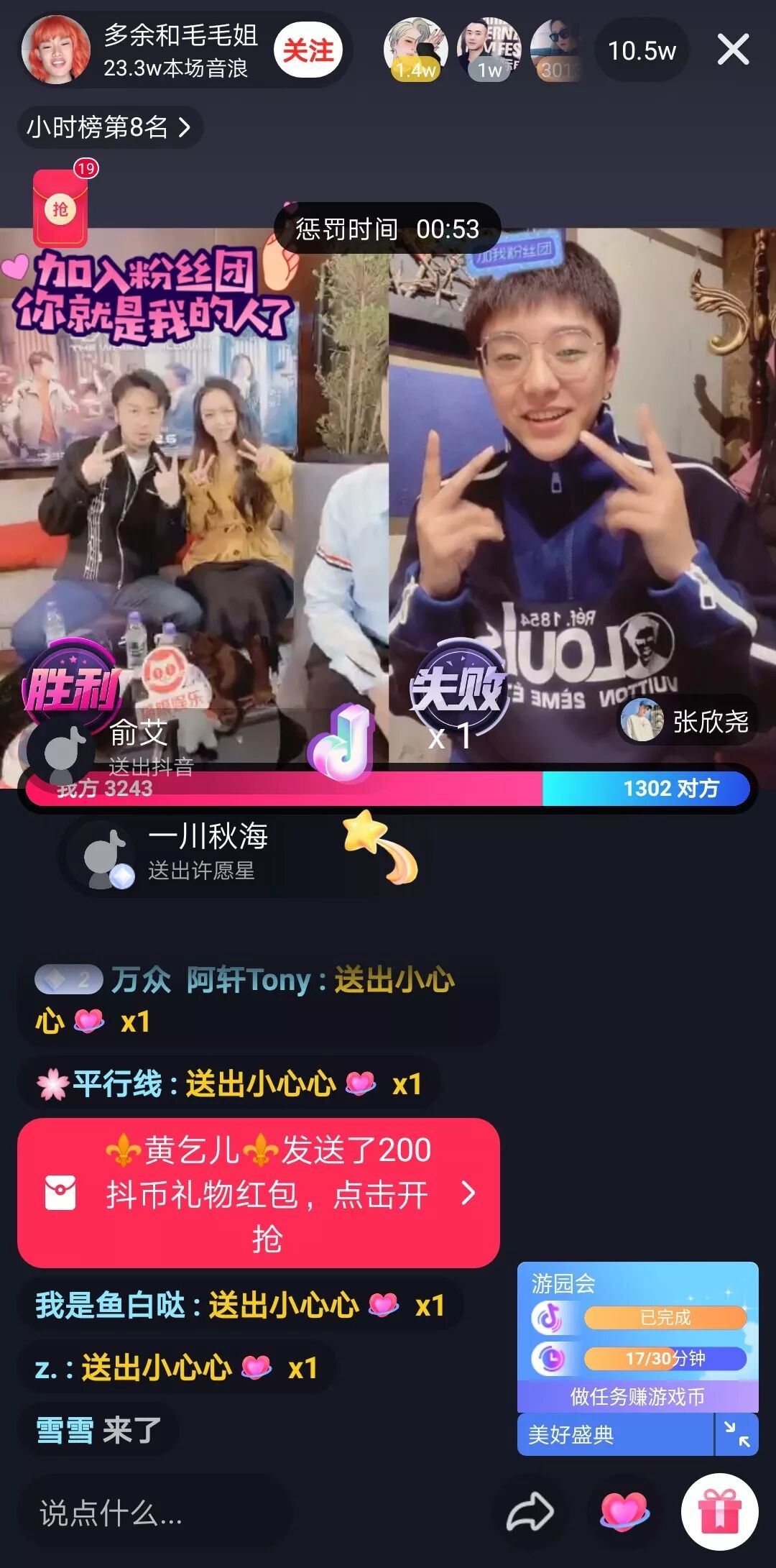 11月29日晚,汤唯、雷佳音空降@多余和毛毛姐的抖音直播间,为将于12月6日上映的新电影《吹哨人》预售卖票,观众可以直接通过直播间的猫眼小程序完成购票。