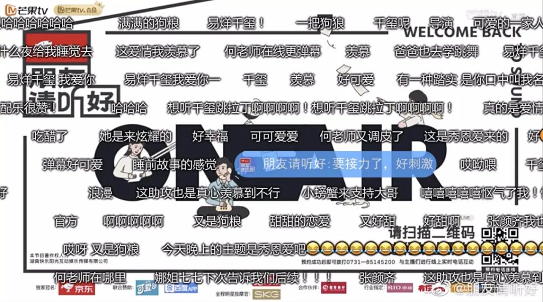 2月19日,《朋友请听好》在芒果TV和湖南卫视热播,节目加入电台主播的形式,邀请何炅、谢娜和易烊千玺担任主播,加深了嘉宾与观众的互动感。