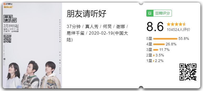 从节目目前上线1个多月,10万余人参与评论,豆瓣8.6的高分来看,《朋友请听好》中提供的一系列思路确实符合当下慢综艺的治愈观。
