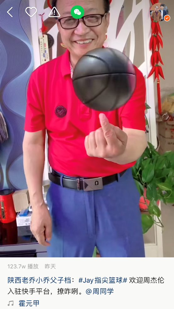 在#跟周杰伦拍同框#话题下,周杰伦发布第二条视频作品,为网友弹钢琴伴奏《说好不哭》并邀请大家同框演唱。正值六一儿童节之际,周杰伦还在视频里提问:“我的哪首歌提到童年的纸飞机?”并以纸飞机与网友隔空互动。 #JAY指尖篮球#话题页中作品是最多的,达到了26.3万。快手知名美食账号“陕西老乔小乔父子档”发布的作品中,老乔模仿着周杰伦“指尖篮球”的动作,随着背景音乐《霍元甲》露出了笑容。