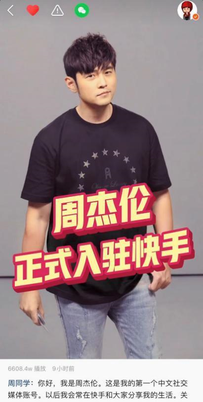 “周杰伦首个中文社交媒体账号,全网唯一,只在快手”。“周同学”是周杰伦首个中文社交媒体账号,在快手主页上,他这样介绍自己。