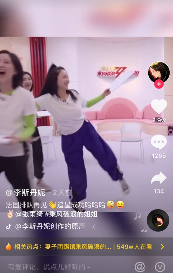 李斯丹妮在微博和抖音平台都表达了自己对于能和张雨绮组队的喜悦,称张雨绮是自己的女神,自己“追星成功”。