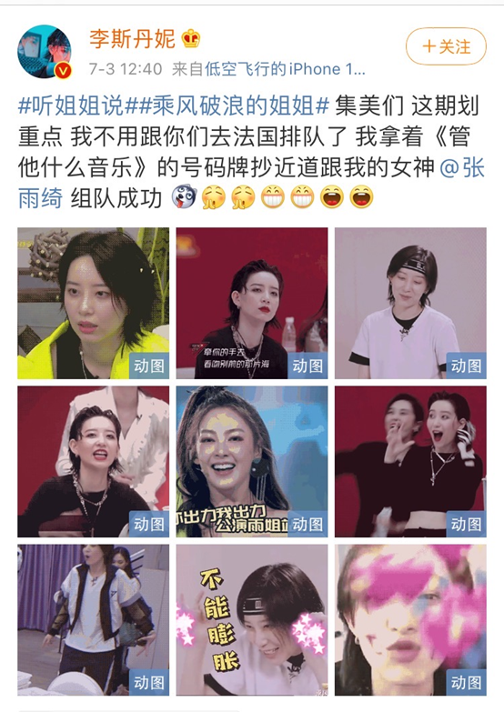 7月3日《乘风破浪的姐姐》第五期播出后,“绮趣蛋(李斯丹妮和张雨绮的CP名称)”超话排名上升了200多名。李斯丹妮和张雨绮“年下小奶狗”和“成熟大姐姐”的形象吸引了一众CP粉。