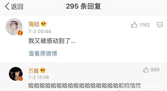 7月2日凌晨,海陆在“茜山万海(万茜和海陆的CP名称)”超话转发饭制视频,并评论“我又被感动到了”,当日下午万茜以一连串的“哈哈哈”回应。“海陆嗑到了自己的CP”上了微博热搜。