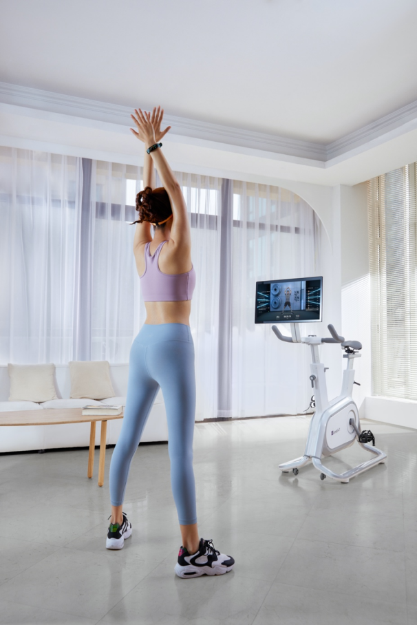 怎么理解呢?先看大会的新品,Keep发布了包括内容、硬件在内的五个全新产品,有“气质芭蕾”、“热汗瑜伽”、“燃脂派对”三个覆盖新手到高阶用户训练过程的精品课程、新一代手环和搭配了一块21.5 英寸可180 度翻转的全触控液晶显示屏的新款动感单车。