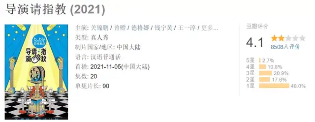 腾讯视频刚播出两期的综艺《导演请指教》,又刷新了年度低分综艺排行榜。日前,靠着“吵架”多次上热搜的这档综艺在豆瓣开分仅有4.1,此举再次证明了一档综艺若仅想凭借话题“出圈”,终难得好口碑。