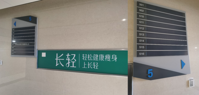 有意思的是,5层一出电梯门,就能看到“轻松健康瘦身上长轻”的标语。