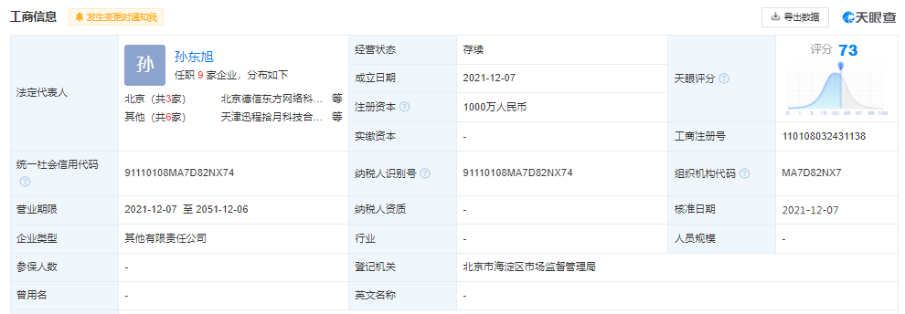 此前12月7日,天眼查App显示,东方甄选(北京)科技有限公司成立,法定代表人是新东方在线CEO孙东旭。东方甄选成立第二天,北京新东方即申请了多个“东方甄选”商标。