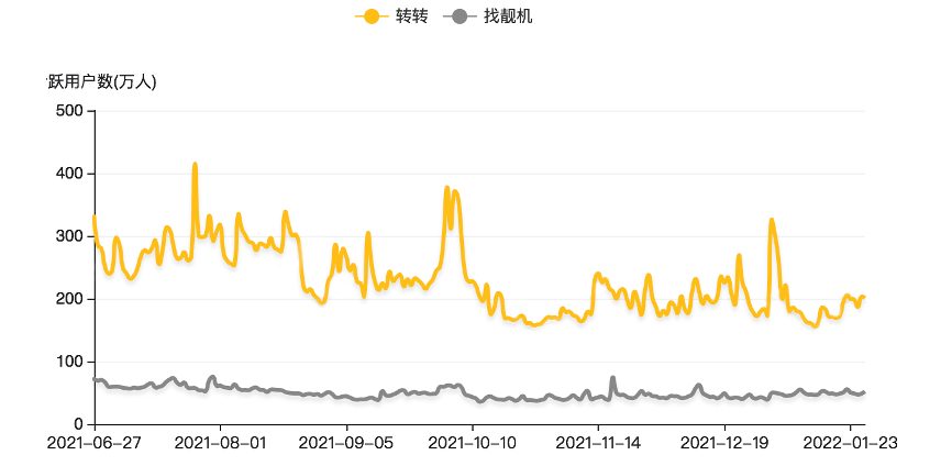 以转转为例,虽然标榜与Back Market同样2C,可研究转转在过去半年的大量投放数据可以看出,其DAU数据仍然无法保持稳定,而且还呈现出一个向下的趋势。这说明转转通过大量的烧钱投放仍然无法稳定用户增长情况,用户留存似乎有些乏力。
