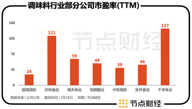 体现在估值上,截至3月18日,颐海国际的市盈率(TTM)约为24倍,相比A股同行,在港股的颐海国际目前的估值已经处于明显的低估的状态
