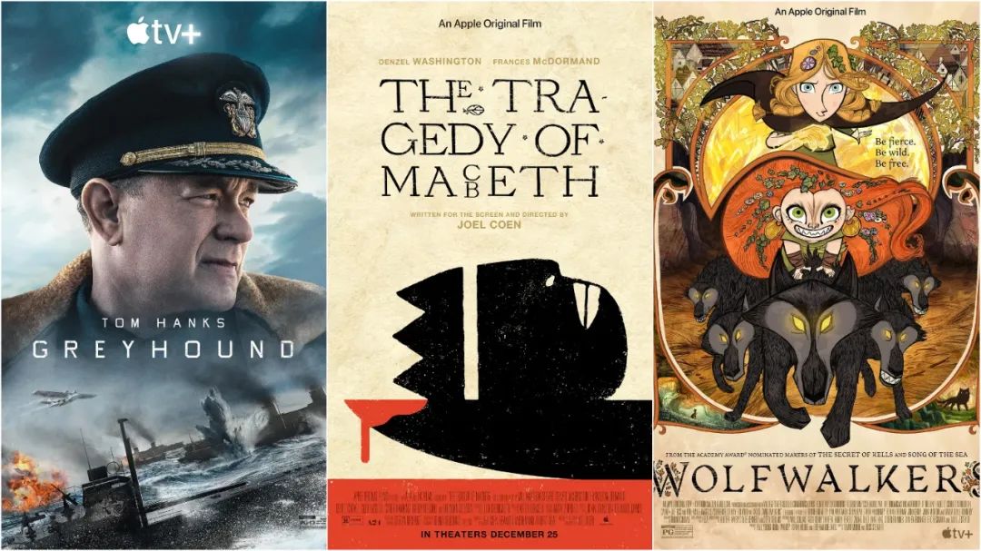 保守的精品竞买策略,是Apple TV+在电影端发力的典型模式。2021年1月在圣丹斯电影节上,Apple TV+以整场电影节的最高价——2500万美元拿下了《健听女孩》的发行出品权。此前,Apple TV+以7000万美元的高价,买断了由好莱坞知名演员汤姆·汉克斯主演的高口碑战争片《灰猎犬号》15年的版权,该片上线后创下了Apple TV+的首映周观影纪录。Apple TV+通过购入优质电影,充实并提升电影片库的整体质量,由此吸引用户并扩大自身影响力。目前已经上线的26部剧情片中,包括了获得奥斯卡三项提名的历史战争片《麦克白的悲剧》,和在IMDb获得8分的动画奇幻片《狼行者》。