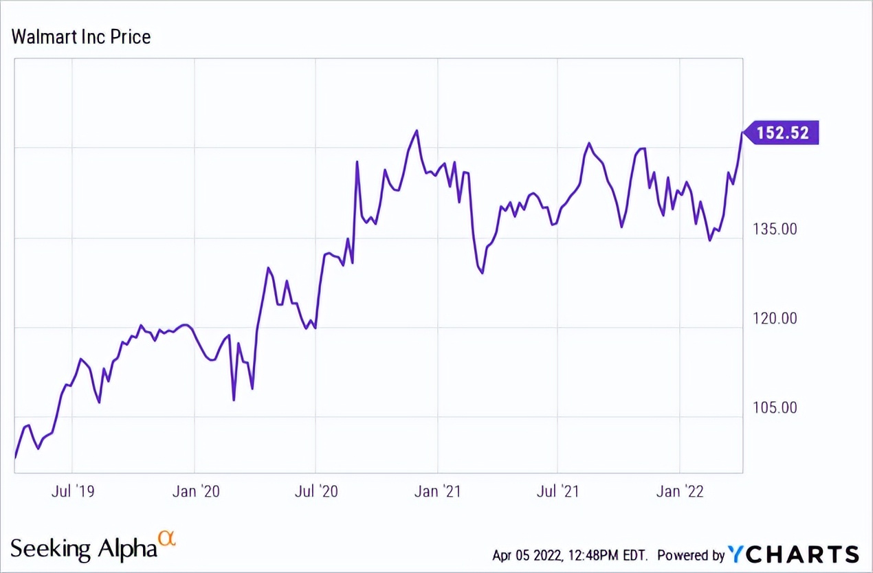 沃尔玛的股票在 2019 年末的交易价格约为每股 115 美元,自大流行开始以来的过去两年半中,该股上涨了 30% 以上。