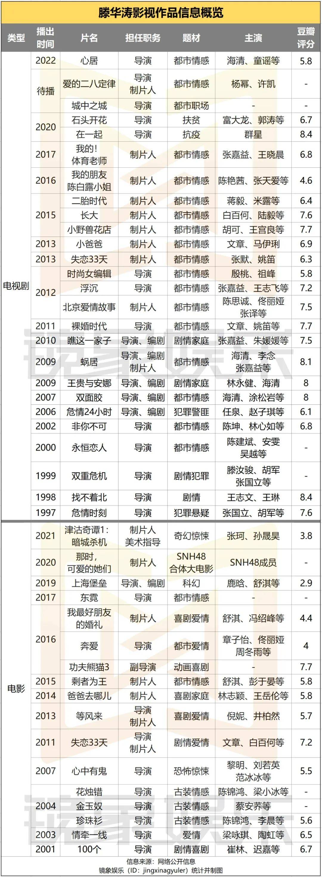 也是因为这层关系,滕华涛很快与华谊兄弟有了联系。据了解,滕文骥与冯小刚是多年好友,也曾是邻居,冯小刚则与华谊兄弟关系密切。2000年,滕华涛执导的《永恒恋人》,出品公司便是华谊兄弟广告有限公司,2001年,他执导的《非你不可》背后,则站着北京华谊兄弟太合影视投资有限公司,而该剧的主演已是陈坤、林心如这样咖位的演员。