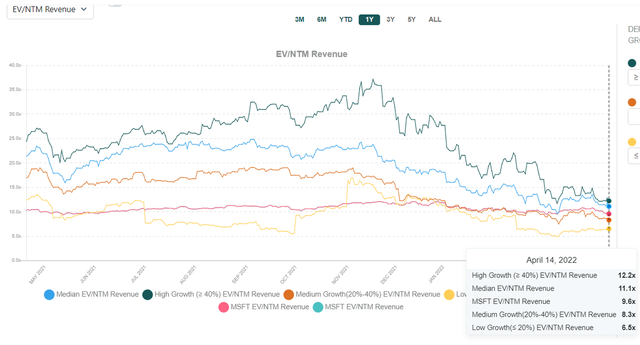 MSFT股票NTM收入倍数对比高增长SaaS同行(来源:Public Comps)