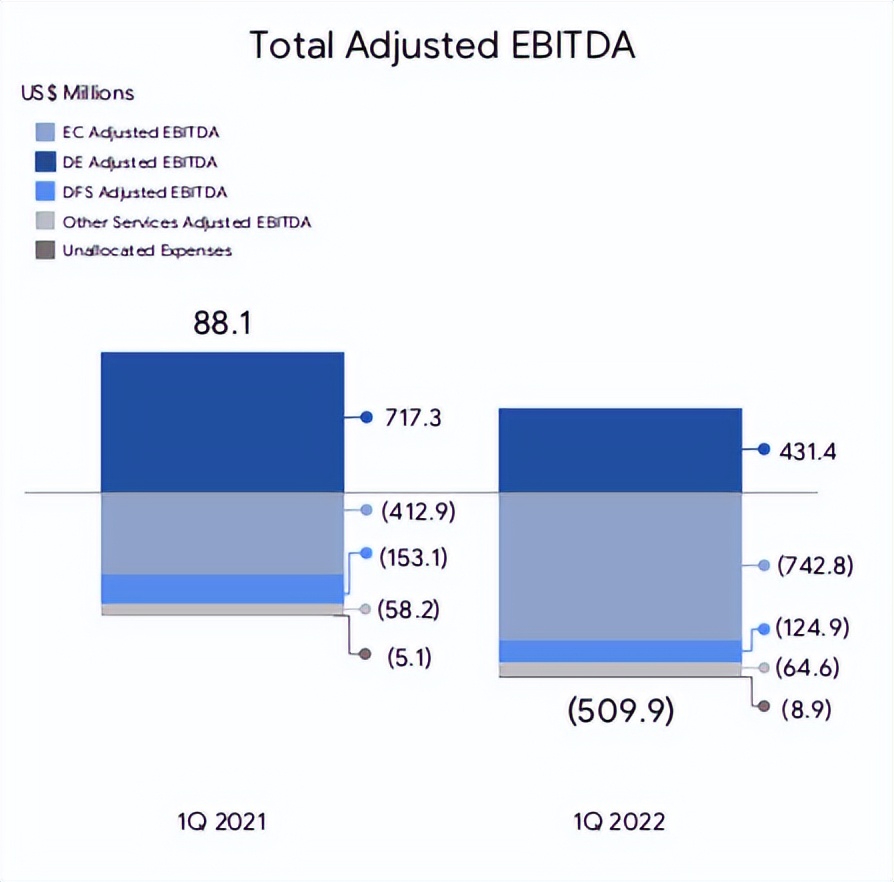 尽管如此,紧随其后的调整后 EBITDA 损失指标为 7.43 亿美元,比去年同期的 4.13 亿美元损失更糟糕。但是,电子商务调整后的 EBITDA 中存在一些需要解决的问题。