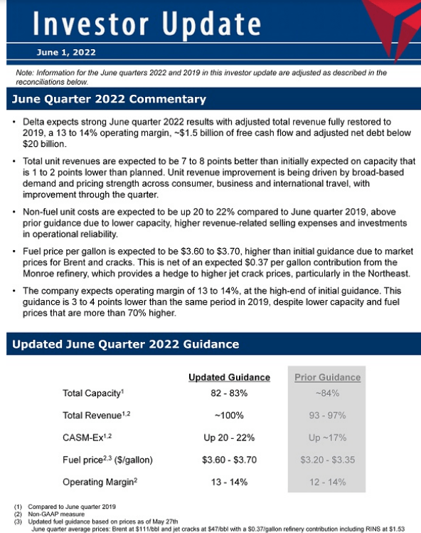 Delta 2Q 2022投资者更新 2022年6月1日 (ir.delta.com)