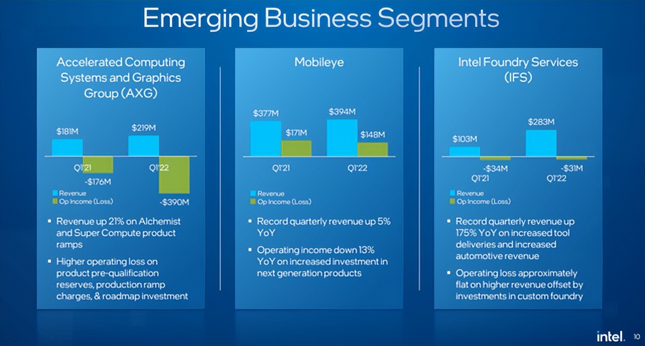 IFS 在这个阶段相对较小(2022 年第一季度总计约 2.83 亿美元,是迄今为止创纪录的季度收入)。增长潜力是巨大的。由于工具交付量增加和汽车收入增加,其 2022 年第一季度收入同比增长 175%。INTC 通过收购和自有投资积极追求 IFS。