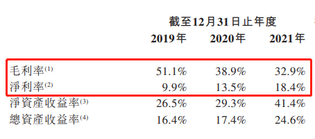 根据财报,2019年到2021年,中国中免毛利率从51.1%下降到32.9%,但是净利润率却从9.9%增加到18.4%。