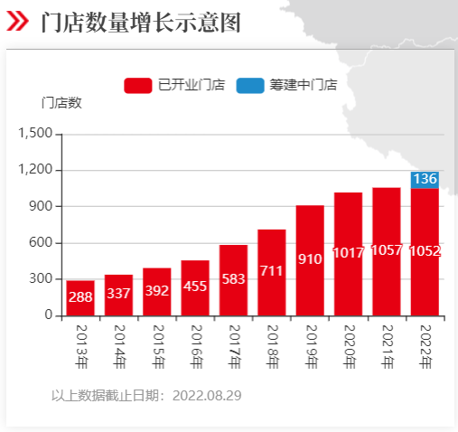 公司官网显示,截至2022年8月29日,永辉超市全国已开业门店数量为1052家,相比中报减少8家。