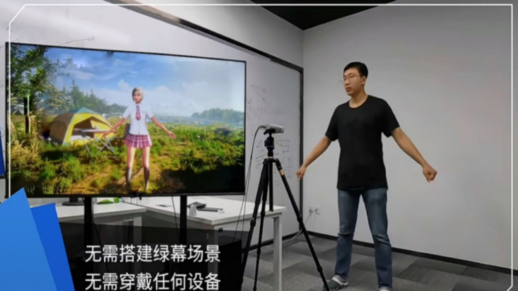硬件的简单,得益于软件功能的强大。MetaC会议系统是当前元宇宙核心技术的集大成者,它利用三维视觉、计算机视觉、自然语言处理等前沿人工智能算法,通过计算机视觉实现的全身动捕,成功为用户提供轻量高精虚拟人驱动能力,以及配套虚拟互动、内容创作能力。