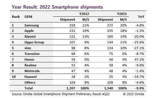 2022年,智能手机市场可谓是经历了最冷“寒潮”。