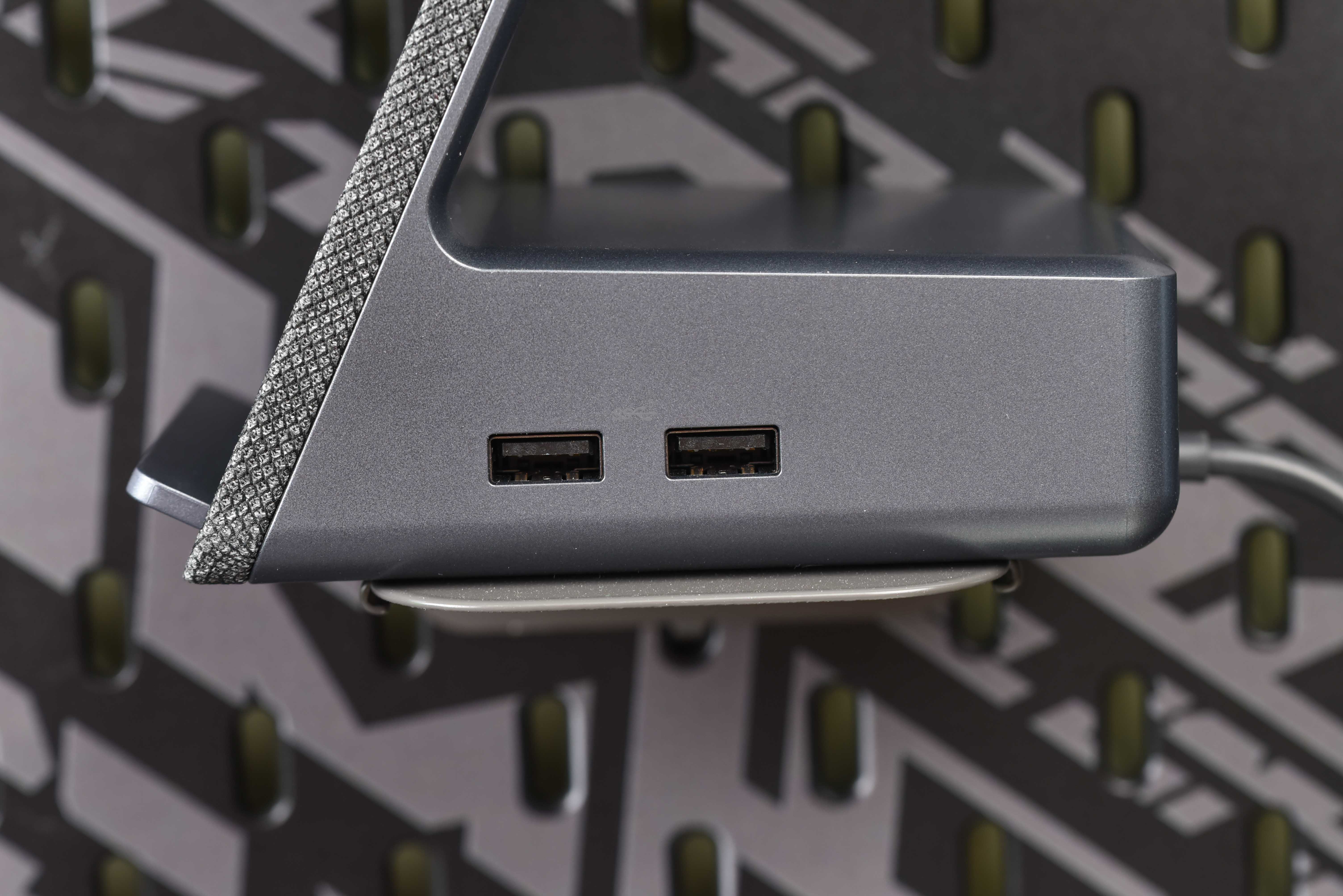 而机身右侧设计了两个USB-A接口,支持USB 3.2 Gen 1标准,带宽为5Gbps。