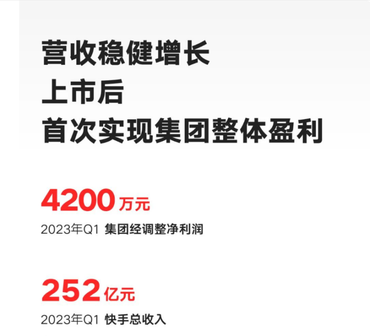 只是,在竞争如此激烈的情况下,快手抢跑的结果如何?从其近日发布的2023年第一季度财报,我们或许能找到答案。