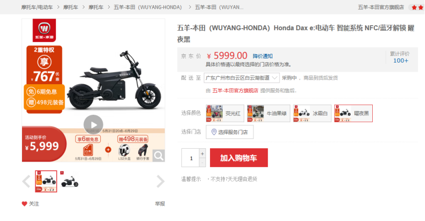 这款售价5999元的两轮电动车在造型上继承了Honda DAX的经典设计,和上文提到的两款其他品牌的高端产品颇为不同。