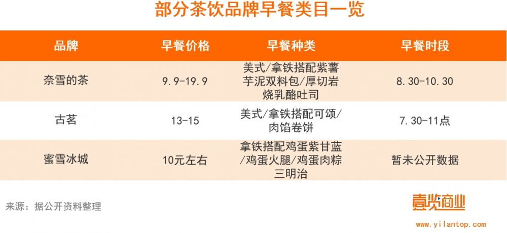 例如古茗。古茗在今年开始试水早餐,用一份“超值咖啡早餐”引起了茶饮市场热议。据悉,古茗早餐主推咖啡与烘焙,小程序点单叠加优惠,售价大都在13元~20元之间。事实上,在古茗之前,蜜雪冰城也在部分门店上线早餐套餐,形式为拿铁搭配三明治,定价10元。