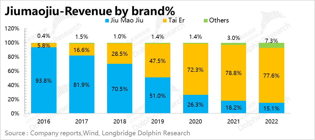 据海豚投研统计,2016年,九毛九西北菜的营收占总营收的93.8%,太二酸菜鱼仅占比5.8%;到了2022年,九毛九西北菜的营收仅占比15.1%,太二酸菜鱼(以下简称“太二”)占比77.6%。即便在整个酸菜鱼行业门店不断关闭的同时,太二还在逆势扩张,据财报显示,去年,太二新开了100家门店。