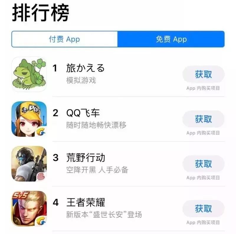 近日,佛系游戏《旅かえる》(中文:《旅行青蛙》)空降APP STORE免费游戏排行榜第一位,不仅力压前几日火爆一时的《恋与制作人》,还超越了《荒野行动》和《王者荣耀》。