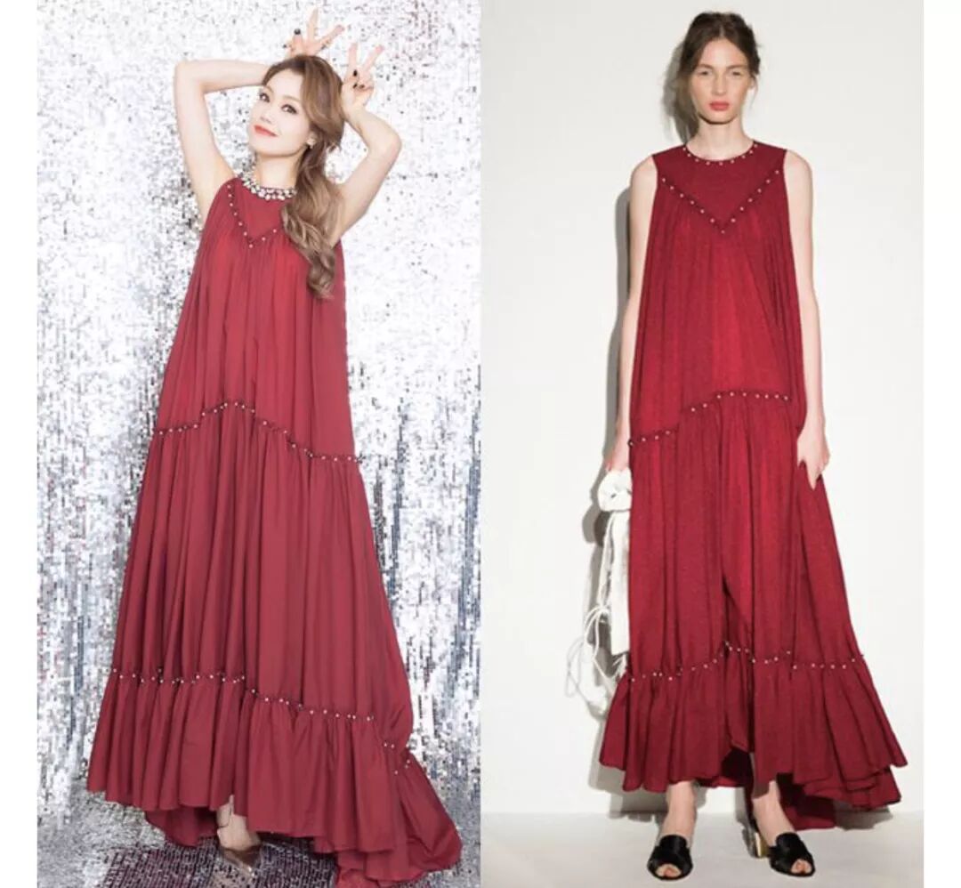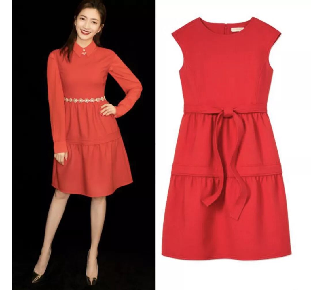 江疏影的红色裙装为Tory Burch 2018春夏系列: