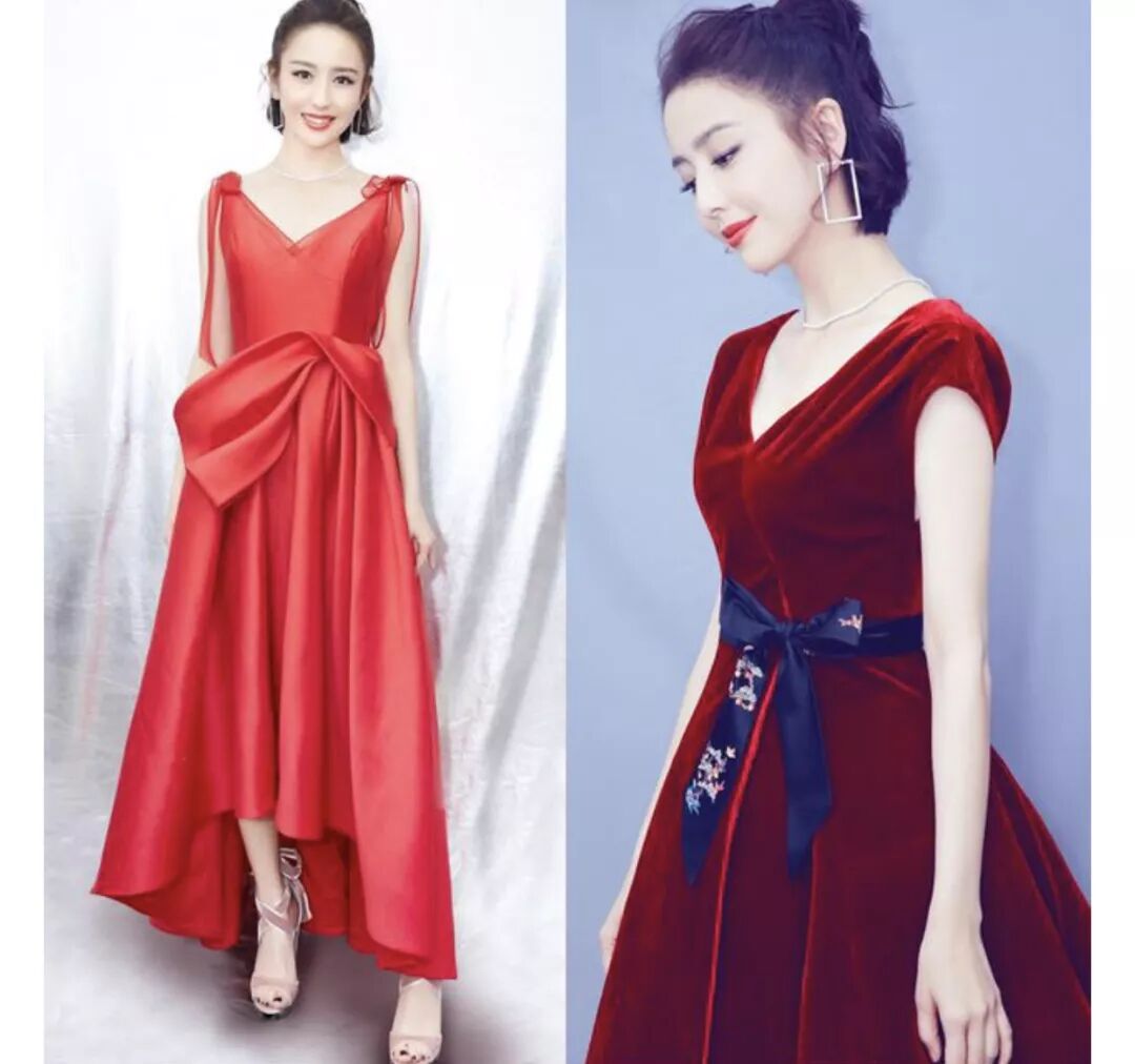 佟丽娅一袭兰玉红色礼服: